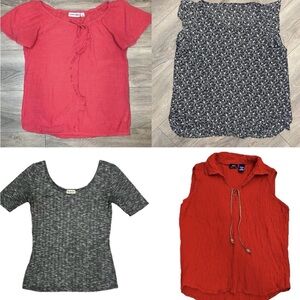 Buffalo David Bitton women's t-shirt blouse, black with small flowers throughout v-neck front chest tie and two small buttons. Pull over ruffled short cap sleeve. Decorative holes around the sleeve and slightly around the neck. Women's Medium 100% Viscose. Extra button inside attached to the tag. One metal piece on string is gone on the chest ties. Check measurements and style before purchasing.