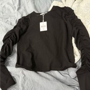 This stylish black top from Walter Baker features long sleeves and a comfortable fit, perfect for any casual occasion. Made from a soft, stretchy material, it offers a snug fit that enhances your silhouette. The deep black color adds a touch of elegance to this versatile top.