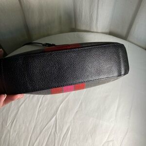 This Coach crossbody bag showcases highlighted by the brand's iconic stripe design. Crafted for both style and practicality, it features a compact silhouette perfect for everyday use. The adjustable strap ensures comfort, making it an ideal accessory for any occasion.