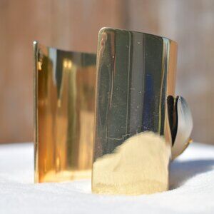 Dragonfly perched atop notched 10-karat gold-plated cuff.