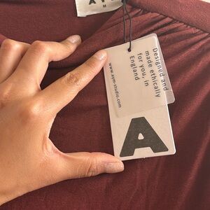 Step into elegance with this Venus Long Sleeve Dress in Bamboo in color burgundy/maroon. Featuring a striking asymmetrical ruffle and graceful long sleeves. “This statuesque maxi dress is crafted from organic bamboo fabric, offering a goddess-like, figure-hugging style that exudes elegance. Perfect for any special occasion, this dress ensures you feel as graceful as a Grecian goddess.