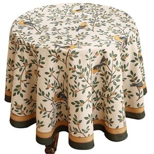 Patdrea Designer Floral Linen Table Cloth Durable Breathable Tabletop Cover Dacorative Kitchen Dining Tablecloth for Round Tables for Kitchen Dining Parties,Holiday Christmas,Diameter 67"
