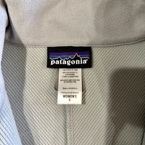 Stylish Patagonia jacket. Vibrant blue color. Full zip front. Comfortable and durable.