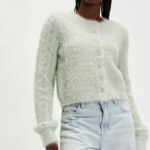 Line though label to prevent store return- no flaws otherwise Embrace effortless style wearing the Free People™ Celeste Cardi. Designed with a soft fabrication and relaxed fit, this cardigan is the perfect blend of comfort and chic. Featuring a colorful buttoned front heart closure and delicate pointelle knit detailing, this round neckline cardi adds a fun and vibrant element to your wardrobe. With long sleeves, cuffs, and ribbed knit trim, this versatile piece is a timeless addition to your fall wardrobe. Why We