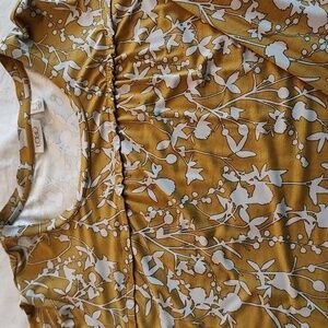 Lori Goldstein LOGO Tunic Size 1X Printed Rayon Long Sleeve Yellow Floral