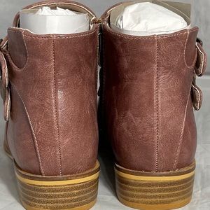 New in box. Size 6.5. The Buckle/Beast Fashion. Step out in street-ready chic with these almond-toe booties boasting a low, walk-friendly heel and a pair of straps for a trend-right touch. (Size note: This item runs small. Ordering one size up is recommended - is what online says) • 1" heel • Pull-on • Man-made upper • Man-made lining • Rubber sole • Imported • No Returns •