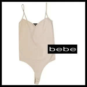 NWT, BEBE Nude V-Neck Bodysuit w/Spaghetti Straps - Small