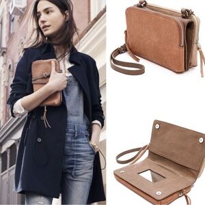 Madewell Twin Pouch Leather Crossbody Bag Washed Leather Light Tan Purse