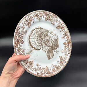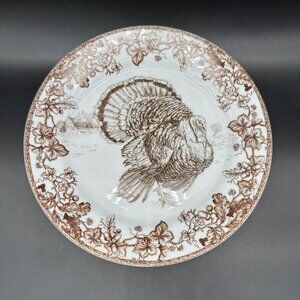 Williams Sonoma Dinner Plate Plymouth Turkey Toile Brown Thanksgiving Ceramic
