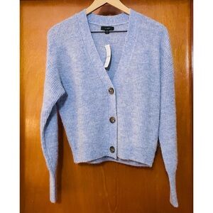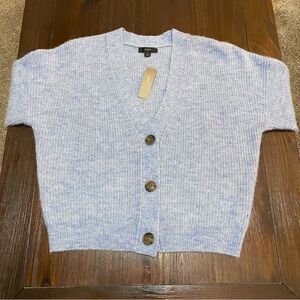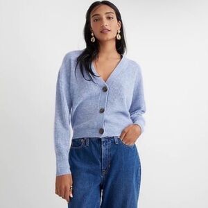 J. Crew Ribbed V-Neck Cardigan Sweater Alpaca Blend Heather River Blue