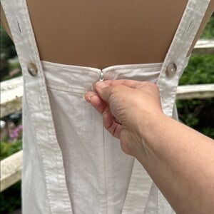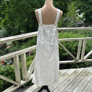 Crafted from a lightweight linen-cotton blend, this off-white midi dress features a square neckline, flattering princess seams, and long adjustable straps that fasten at the back. It’s an easy way to achieve a polished, effortless style.