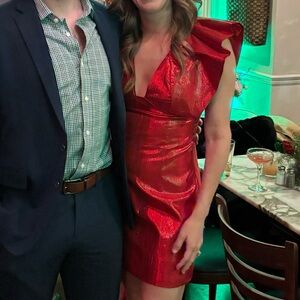 HYACINTH HOUSE Red Metallic Plisse Tanya Mini Dress Tuckernuck
