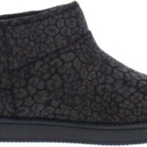 Step into comfort and style with the GBG Los Angeles Alena Women's Short Ankle Bootie. Designed with a sleek black with gold shimmer faux suede upper and a cozy faux fur insole, these booties offer both warmth and sophistication. The durable rubber outsole provides excellent traction, making them a practical choice for everyday wear. The versatile ankle height and bootie style make these shoes a perfect match for a variety of outfits, whether you're dressing up for a night out or keeping it casual for a day around town. Available in a US size 6, these booties are a chic addition to any wardrobe.