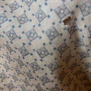See photo one small hole pin lining and wear on bottom leather trim