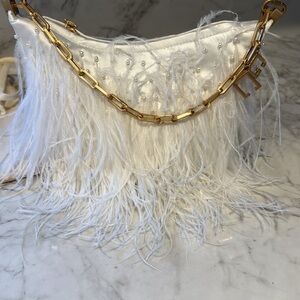 Cult Gaia White and Gold Shoulder Bag with Chain Strap
