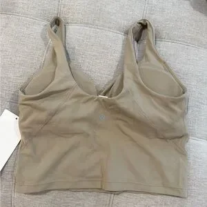 Experience ultimate comfort and light support with this tan sports bra from lululemon athletica. Crafted from a soft, stretchy fabric, it features a classic scoop neckline and a racerback style for a sleek, modern look. Perfect for both athletic activities and lounging, this versatile piece is a must-have in your wardrobe.