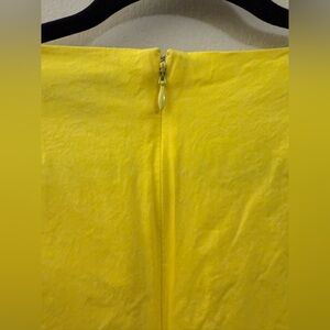 Bright yellow midi dress by COS. Features a simple, elegant design with three-quarter sleeves.