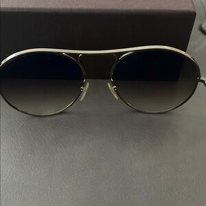 Stylish Tom Ford sunglasses. Sleek black lenses. Elegant silver frame. Perfect for any occasion.