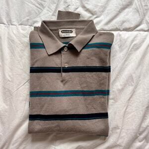 Vintage 60s 70s striped polo sweater shelter Bay size Large academia preppy