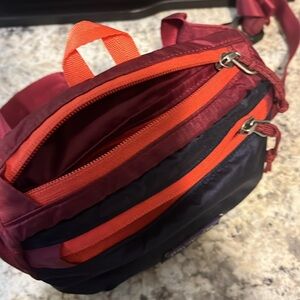 This Patagonia belt bag combines vibrant colors for a striking look. Designed for convenience, it features an adjustable strap for a comfortable fit. Ideal for both casual outings and outdoor adventures, this bag offers a stylish and practical solution for carrying essentials.