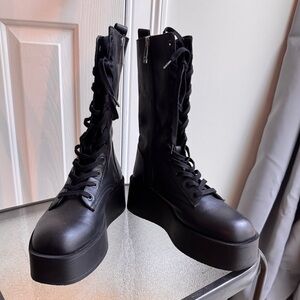 Stylish black platform boots with lace-up design. Perfect for a bold look. Like new , worn ones on set . Platform 2.5”