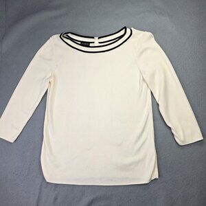 Designers Originals Studio Fa La La Designers Originals Winter Sweater Women L Ivory Pullover Patchwork Skaters Vintage Great pre-owned condition. SEE MEASUREMENTS IN DESCRIPTION and measure against an item you own for a good fit. (see pics for details) Features: Quality cotton ramie blend Soft Ivory white and gray with decorative patchwork stitching Decorative stitching Embroidered Beaded Flaws: No holes, stains, or tears Size = Large Measurements: Chest: measured laying flat: 21" Length: 29" Sleeve length - measured from under armpit to bottom of sleeve:16" Washing instructions: hand washable Comes from a smoke-free environment Super Fast Shipping: We ship out the same or next business day! Grandma, teacher, ugly sweater