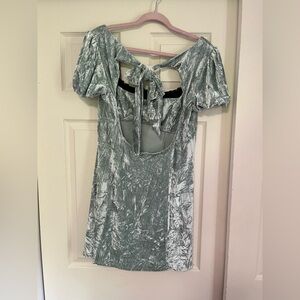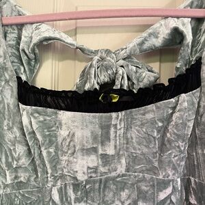 Kimchi Blue size XL baby blue crushed velvet dress. Black lace neckline detail. Black rosette detail to center of neckline 🖤🩵