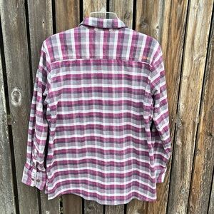 Ariat Large Flannel Shirt Ladies Rebar Plaid Purple Gray Button Front L Stretch