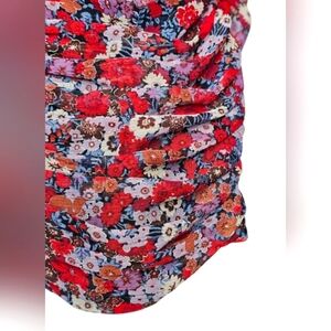 🆕️Zara Ruched Red Pink & Gold Ruched Puff Sleeve Mini Chiffon Draped Dress M