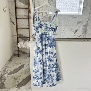 ABERCROMBIE Emerson Linen Floral Midi Dress Blue and White M ๐