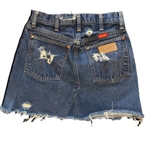 Stylish distressed denim skirt featuring a bold zipper detail. Perfect for casual outings.