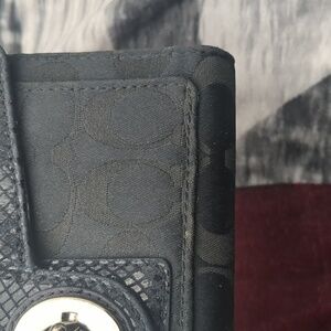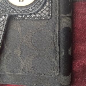 Coach Black Leather Wallet with Embossed Signature Pattern