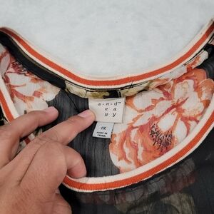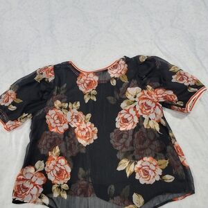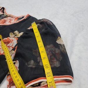 Floral Women's Black Floral Sheer Puff Sleeve Ringer Top By A New Day Sz. 1X