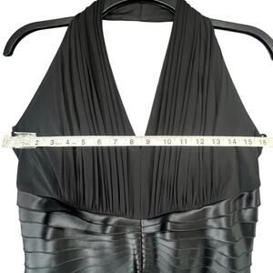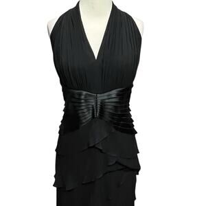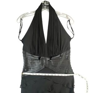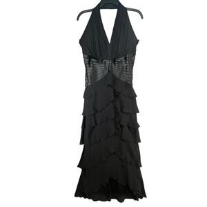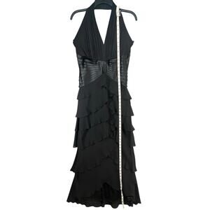 Vintage Y2K Tadashi Shoji Halter Dress Womens Size 12 Black Silk Tiered Layered Cocktail Gown