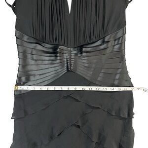 Tadashi Shoji Y2K Halter Dress 12 Black Silk Tiered Layer Cocktail Gown Romantic