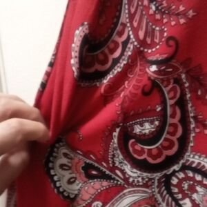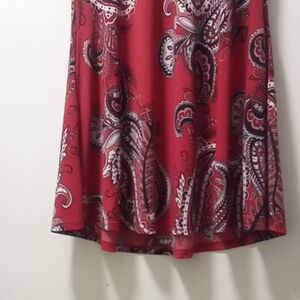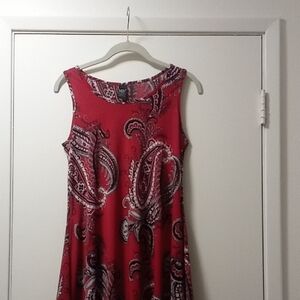 This stylish mini dress features a vibrant red paisley pattern, perfect for any occasion. The sleeveless design offers a chic and comfortable fit.