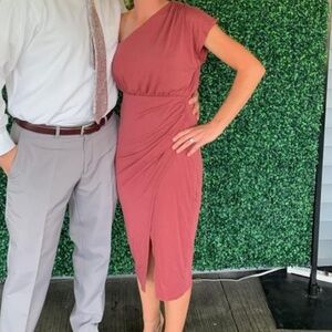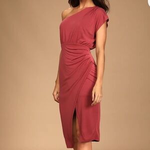 Lulus Raise A Glass Rusty Rose One-shoulder Midi Dress Red - Size S