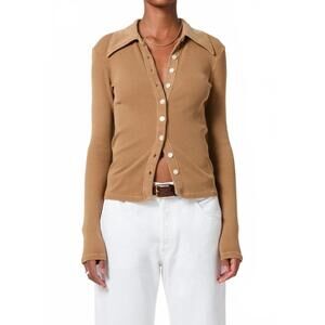 Thanks for checking out our fabulous Posh closet!! All of our items are new with tags! Never worn or used <3 - Composition: 49% Organic Cotton 49% Tencel Lyocell 2% Spandex - Description: A classic button down shirt that will never go out of style.Elevate your warm-weather wardrobe with the Gila Polo in Marcona by Citizens of Humanity. This long-sleeve shirt is expertly crafted from a luxurious blend of 49% organic cotton, 49% Tencel Lyocell, and 2% spandex, promising a soft ribbed texture and figure-hugging fit. Featuring a sleek polo collar and button closure, it measures 28" chest, 13.5" shoulder to shoulder, 21.25" body length, and 24" sleeve length. Care for this minimalist piece by machine washing cold inside out with like colors and tumble drying low. Model is 5'10" and wearing a size small. - Because all of our merchandise is brand new and often times in original packaging, extra photos or measurements cannot be provided - Heads-up that color shades may vary due to the photo lighting - We always put the color name in the title - All items are final sale - Thank you so much for shopping! We appreciate you :)