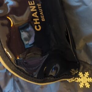 CHANEL Beauté Glossy Black Pouch with Gold Details