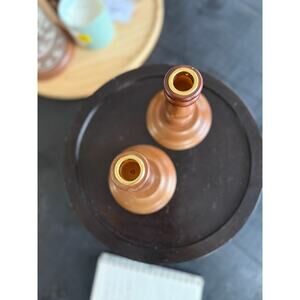 vintage candle holders, wooden taper holders, rustic decor, farmhouse style, mid-century modern, brass insert candlesticks, cottagecore, classic home accents, wood decor, candle accessories