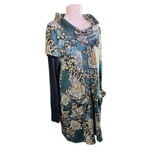 Joe Browns Womens Floral Cowl Neck Tunic Dress W/ Pockets Blue & Cream M