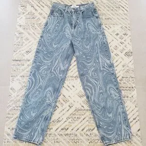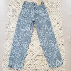 Urban Outfitters BDG Blue Laser Swirl Print Bow Jean Boyfriend Wide Leg SZ 27x32
