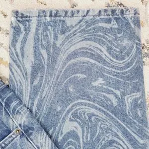 Urban Outfitters BDG Blue Laser Swirl Print Bow Jean Wide Leg Womens SZ 27 x32