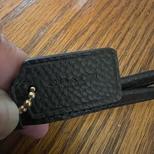 Coach black leather wristlet, approximately 6x4, double zippers, 2 small card pockets inside, never used, excellent condition