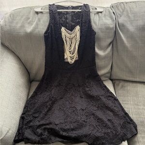 Elegant Black Lace Dress with Pearl Detailing