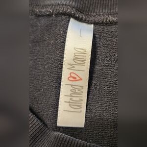 Gently used Latched Mama nursing crewneck in a Women's size Large. It is black with gold sparkles for extra details. It crosses in the front with a hole underneath for easy access for nursing baby.