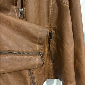 Max Studio Brown Faux Leather Moto Jacket Asymmetrical Zipper