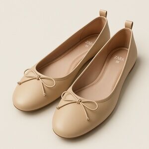 Zara Pink Leather Ballet Flats Size 38 or US 7.5 NEW