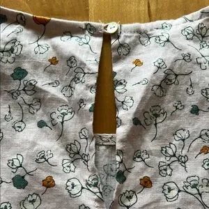 34” from shoulders to hem. Flares out to 30” across bottom. One pocket on each side. Button loop closure in back. 100% linen. Wash cold, line dry, low iron. Cynthia Rowley. Size M NWT.