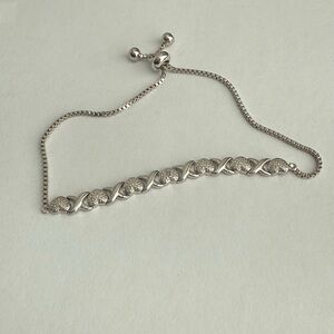 Delicate and charming fine Silver plate bracelet.Adorn your wrist with this diamond accent ,X and Heart bolo adjustable bracelet
